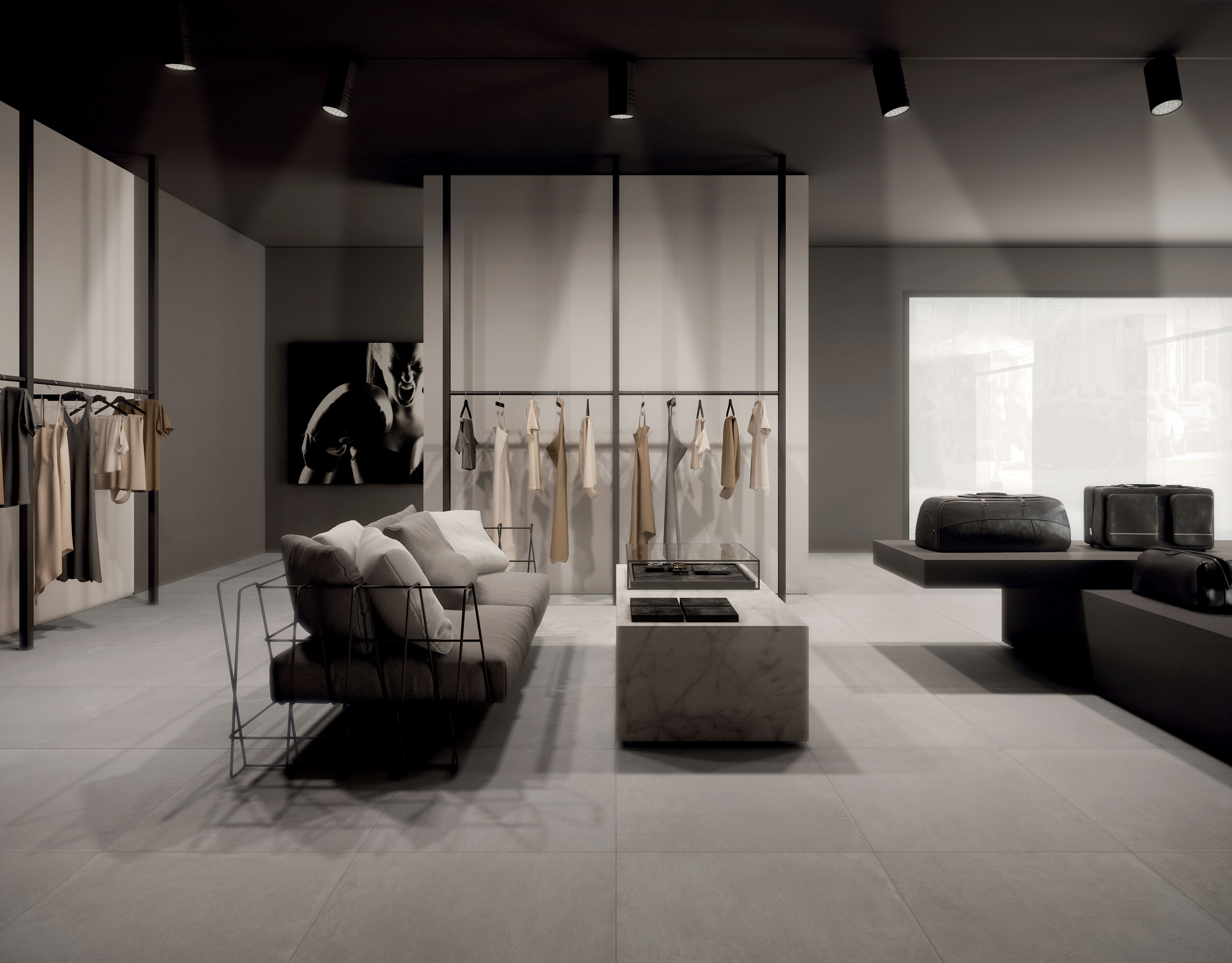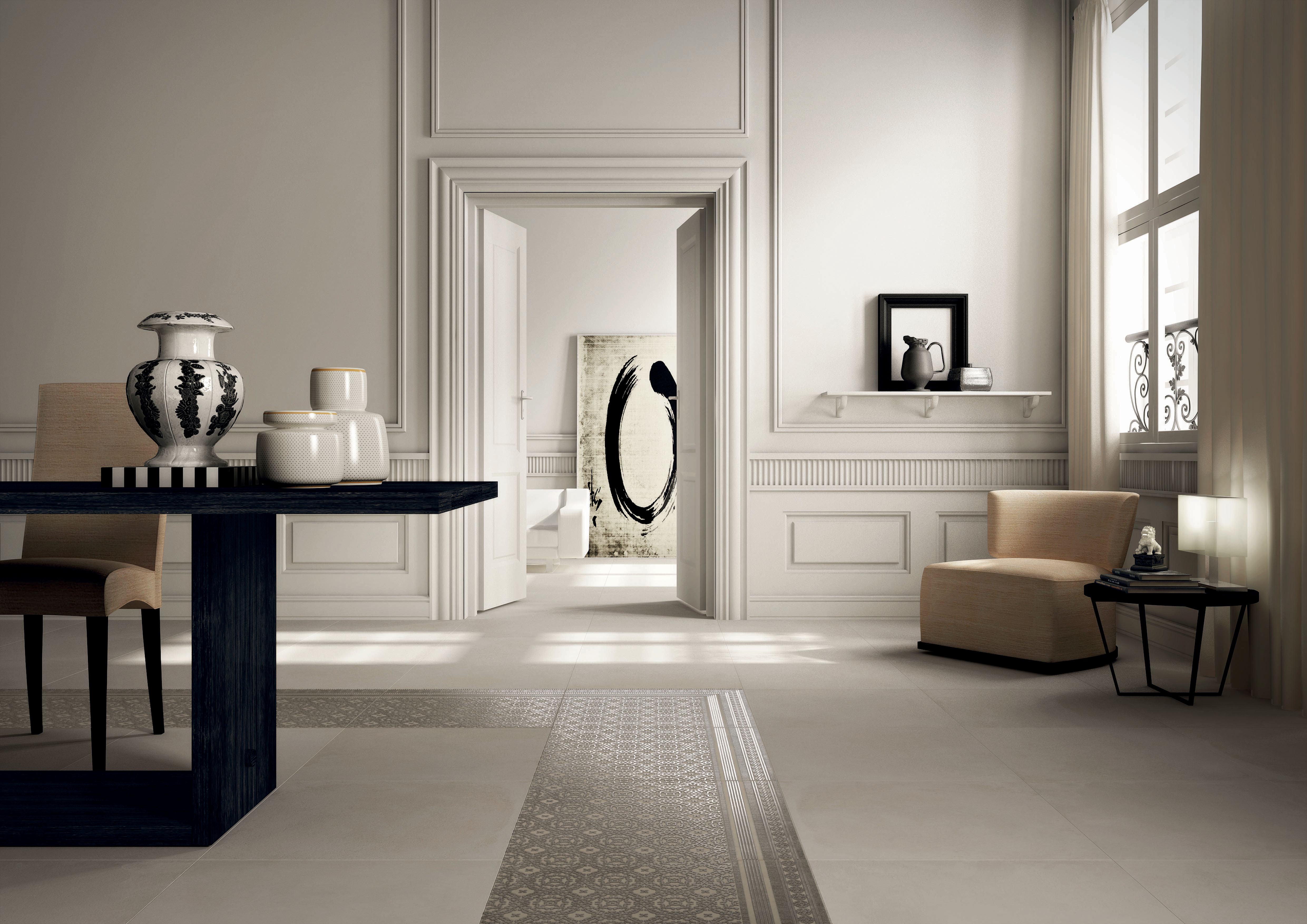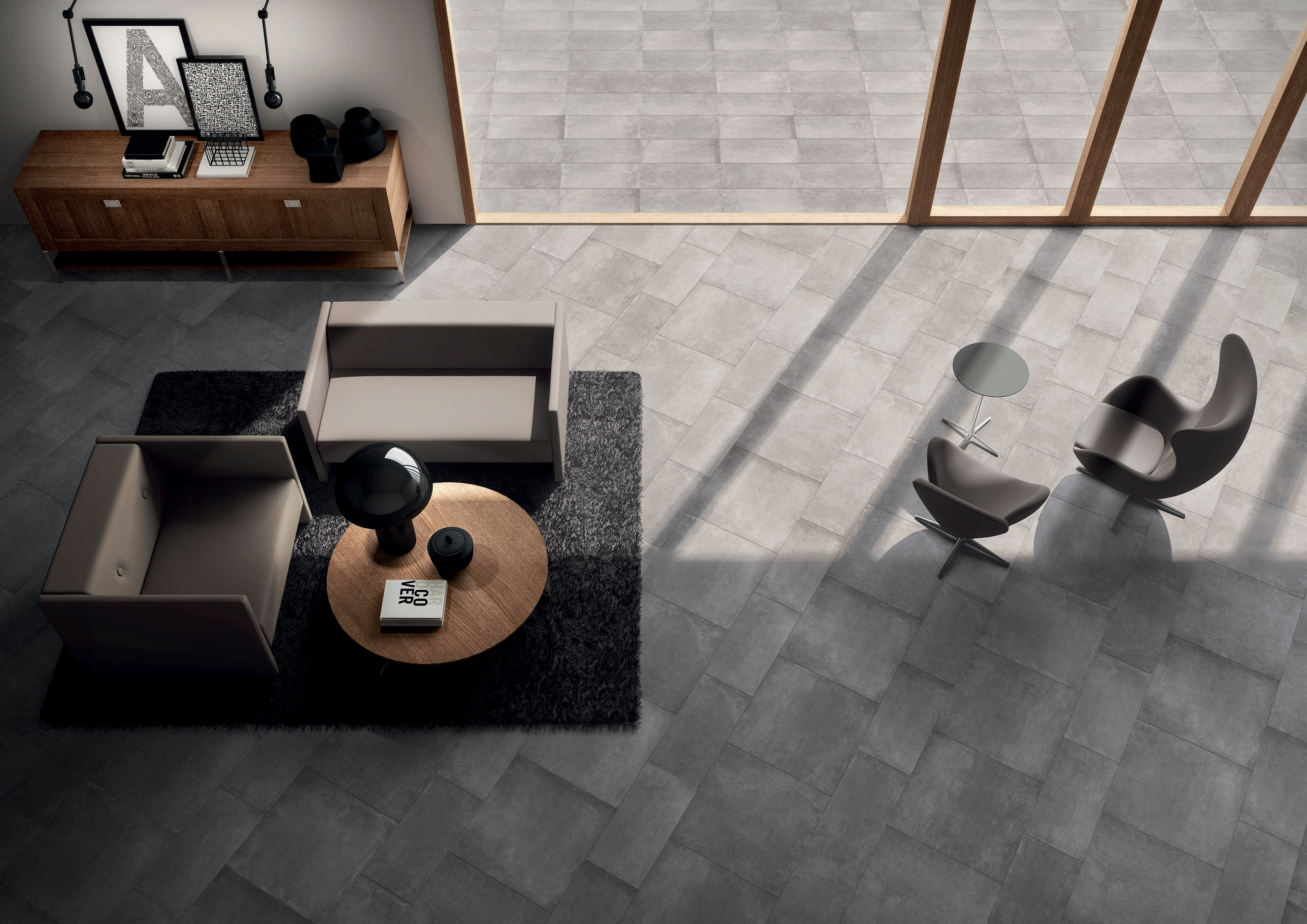 Contemporary stone look porcelain tile available in four versatile neutral tones with a natiral surface to compliment any design